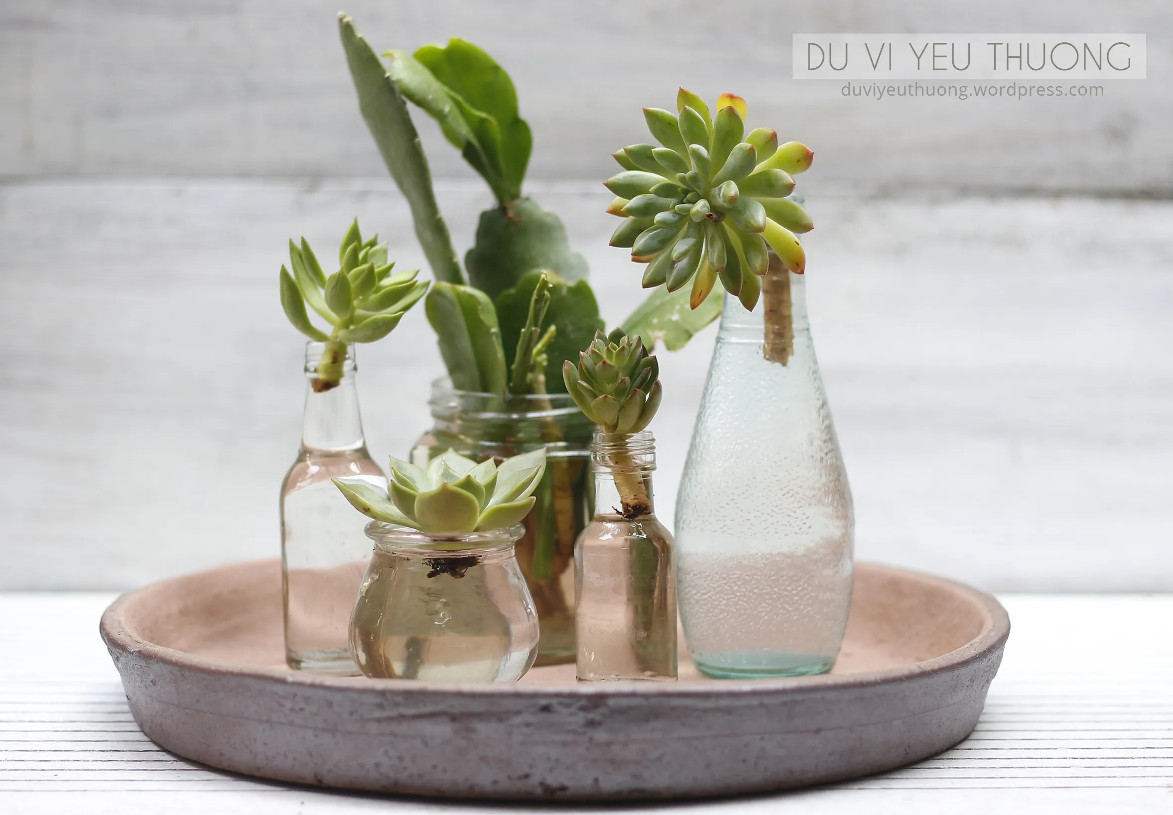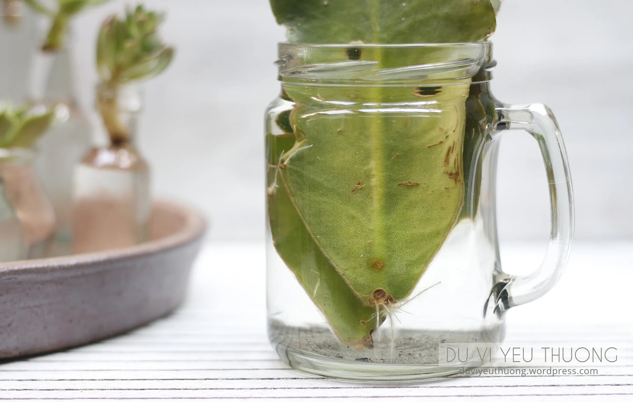 ⚠️ Lưu ý: Tránh tuyệt đối ánh nắng gay gắt trực tiếp chiếu vào lọ nước. Nắng nóng sẽ làm nhiệt độ nước tăng cao, gây “luộc” chín các tế bào non vừa mới hình thành, khiến cách trồng hoa sen đá của bạn thất bại hoàn toàn.