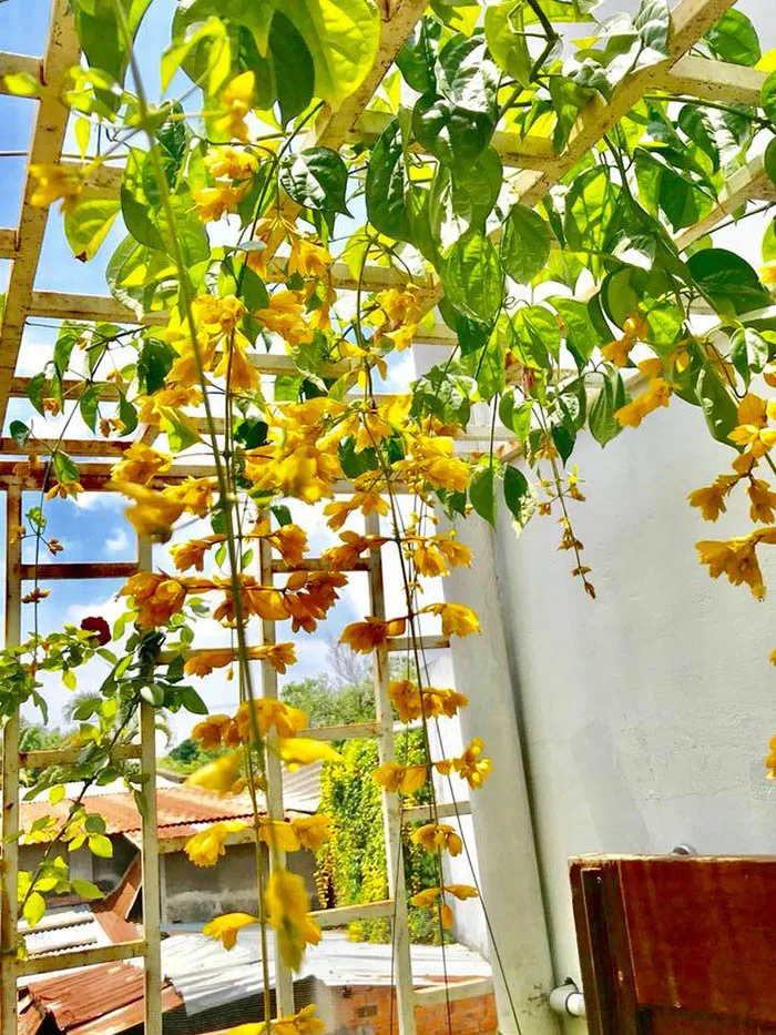 Cây Huỳnh Anh vàng mang ý nghĩa tài lộc, thích hợp với giàn nắng gắt