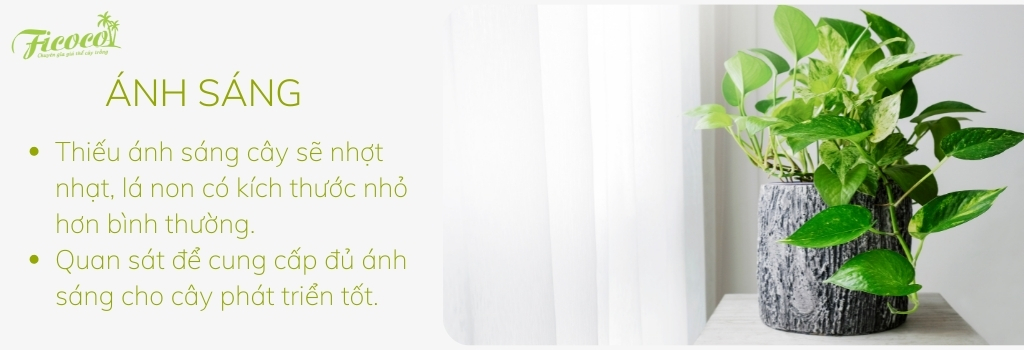 Ánh sáng là nguồn dinh dưỡng cần thiết để cây trồng tạo ra chất diệp lục. Thiếu ánh sáng cây sẽ nhợt nhạt và bạn có thể dễ dàng nhận thấy cây đang thiếu ánh sáng khi quan sát thấy những lá non mới mọc có kích thước nhỏ hơn bình thường.