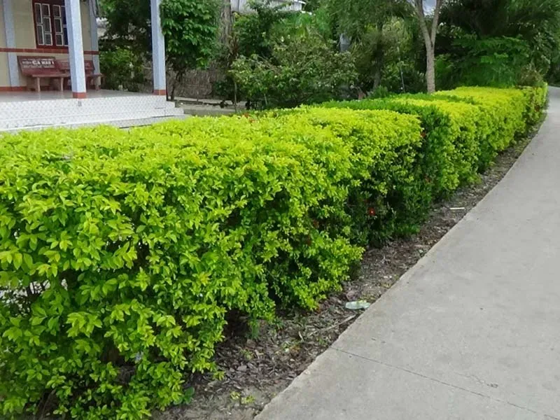 - Chăm sóc: Cần ánh nắng đầy đủ, đất thoát nước tốt để tránh úng rễ. Tưới nước giữ ẩm và cắt tỉa định kỳ để duy trì hình dáng hàng rào.