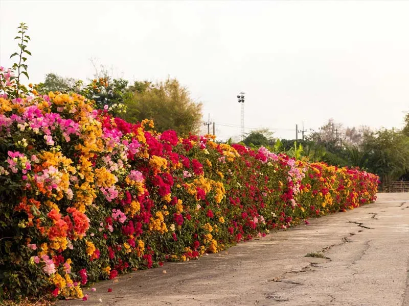 Hoa giấy và huỳnh anh là hai lựa chọn tuyệt vời cho hàng rào quanh năm rực rỡ sắc hoa.