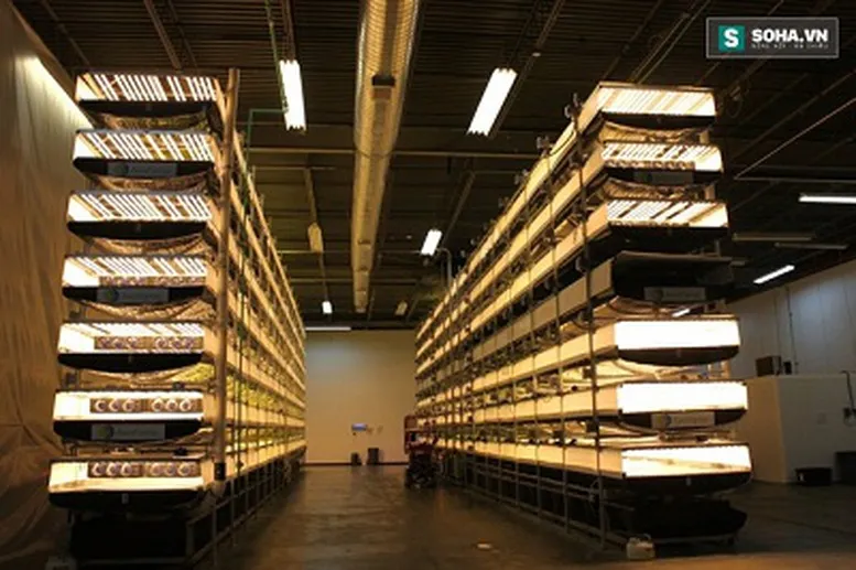 Hệ thống giàn trồng rau 6 tầng tại trang trại FarmedHere