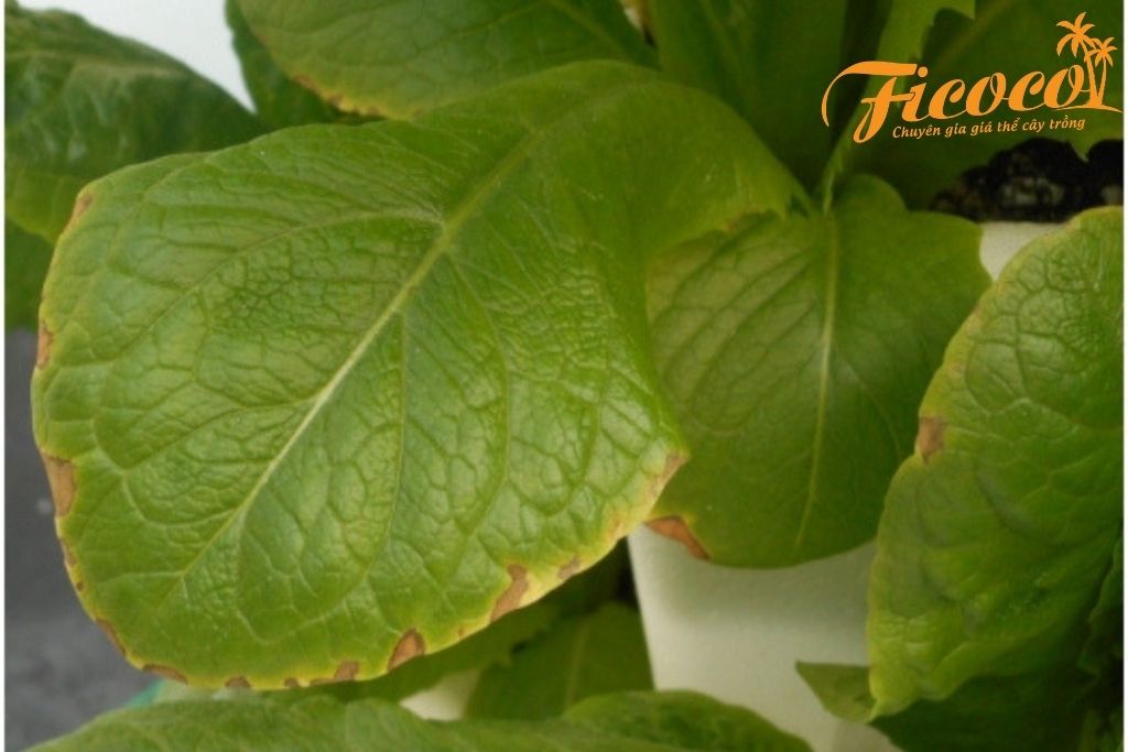 Hình 2. Cháy viền lá trên xà lách thủy canh